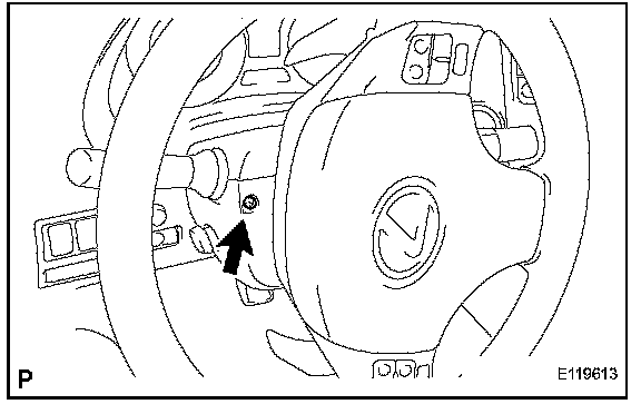b. The steering wheel assembly is turned to the left and remove the screw as shown in the illustration.