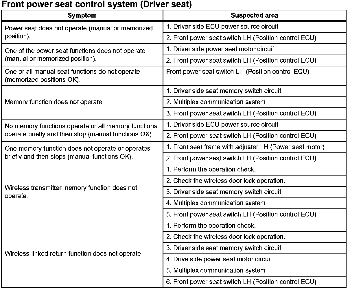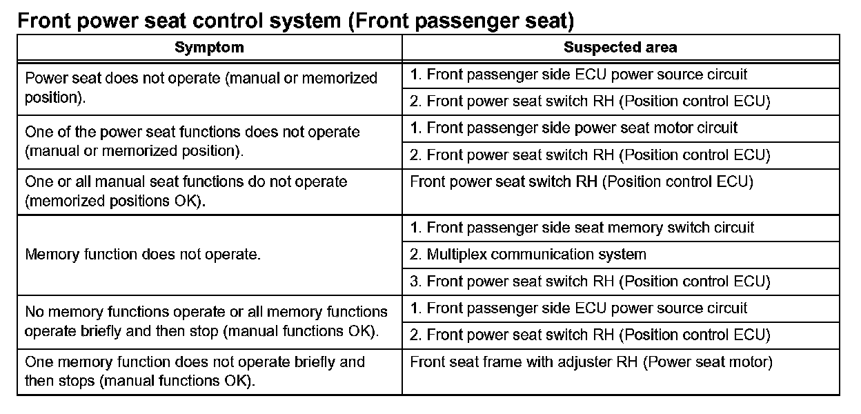 Front Power Seat Control System (W/ Seat Position Memory System)