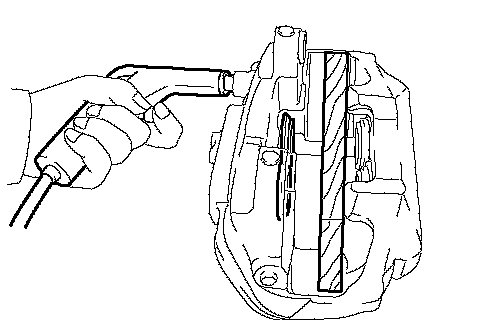 c. Use compressed air to remove the pistons alternately from the disc brake cylinder assembly.