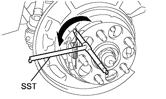 a. Using SST, remove the No. 2 parking brake shoe return spring.