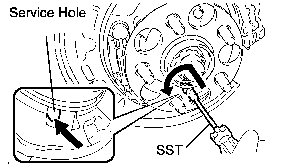 HINT: Use the service hole to retain the No. 1 hold down spring pin with your finger.