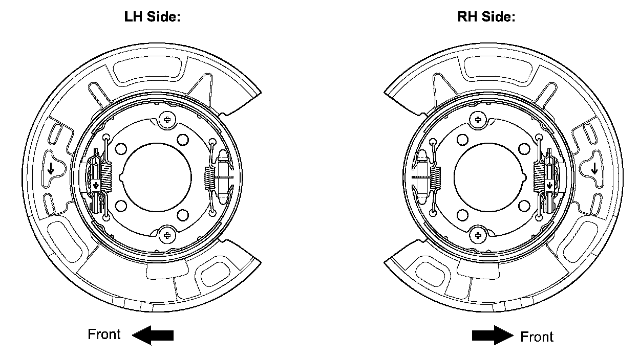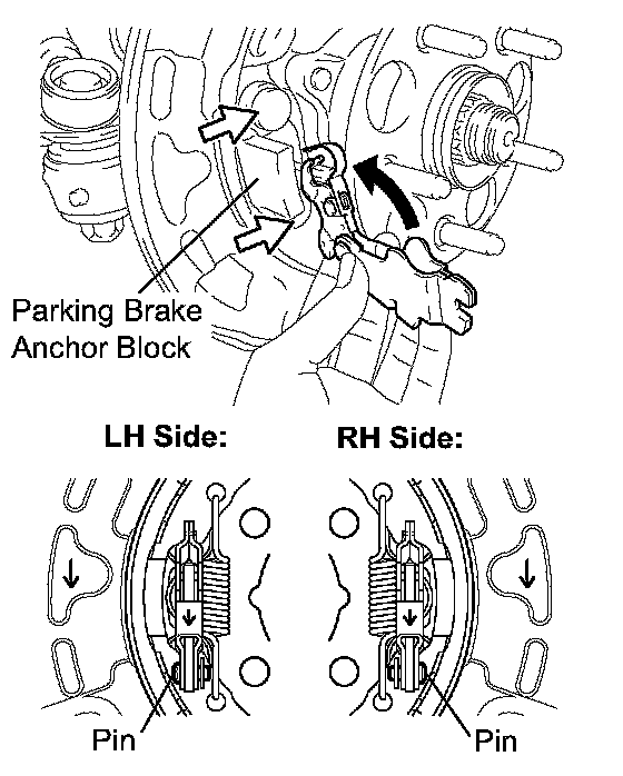NOTICE: Take care to install the correct parking brake shoe lever because the direction of the pin is different between left and right.