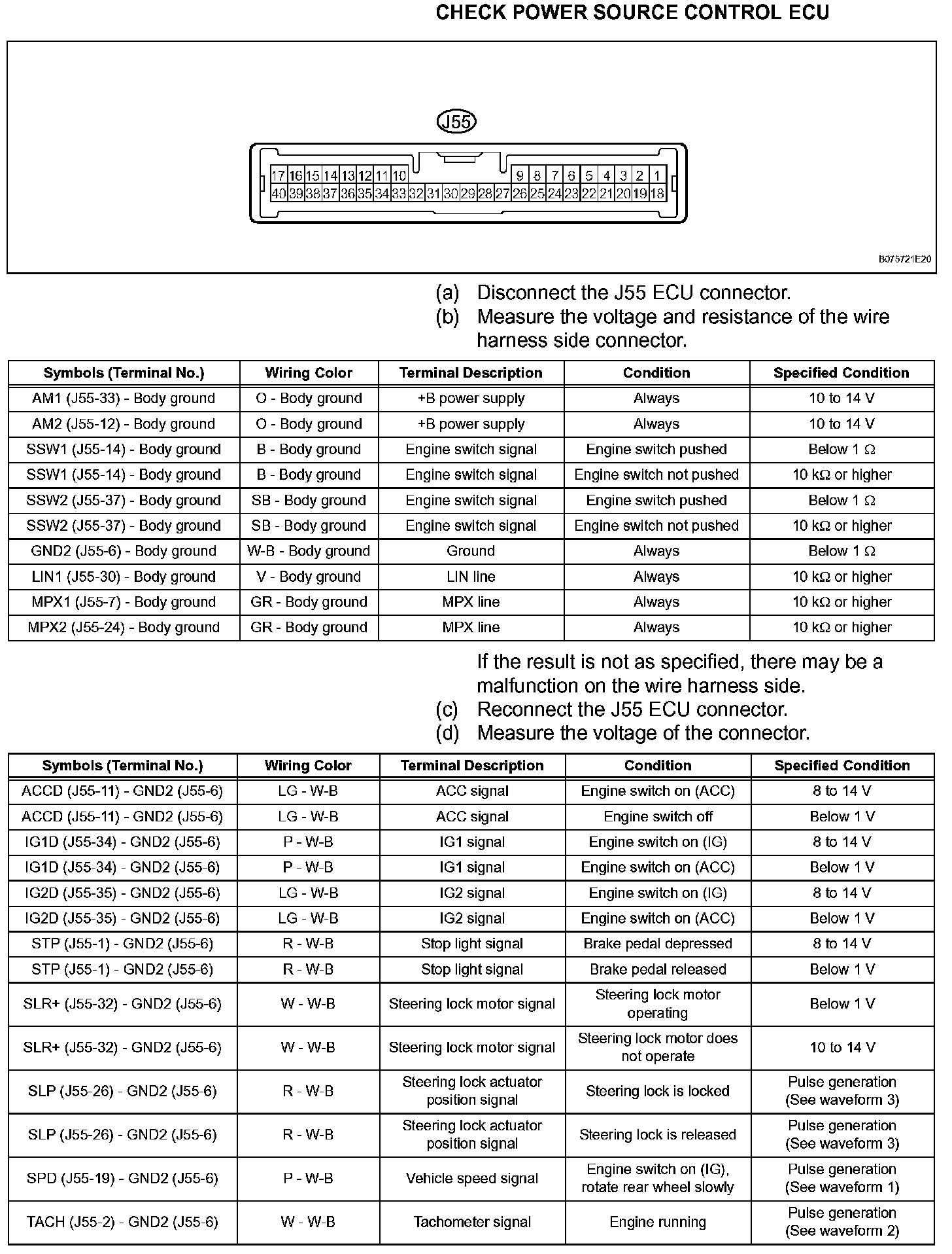 Terminals Of Control Module/Pinouts - Check Power Source Control ECU (Part 1):