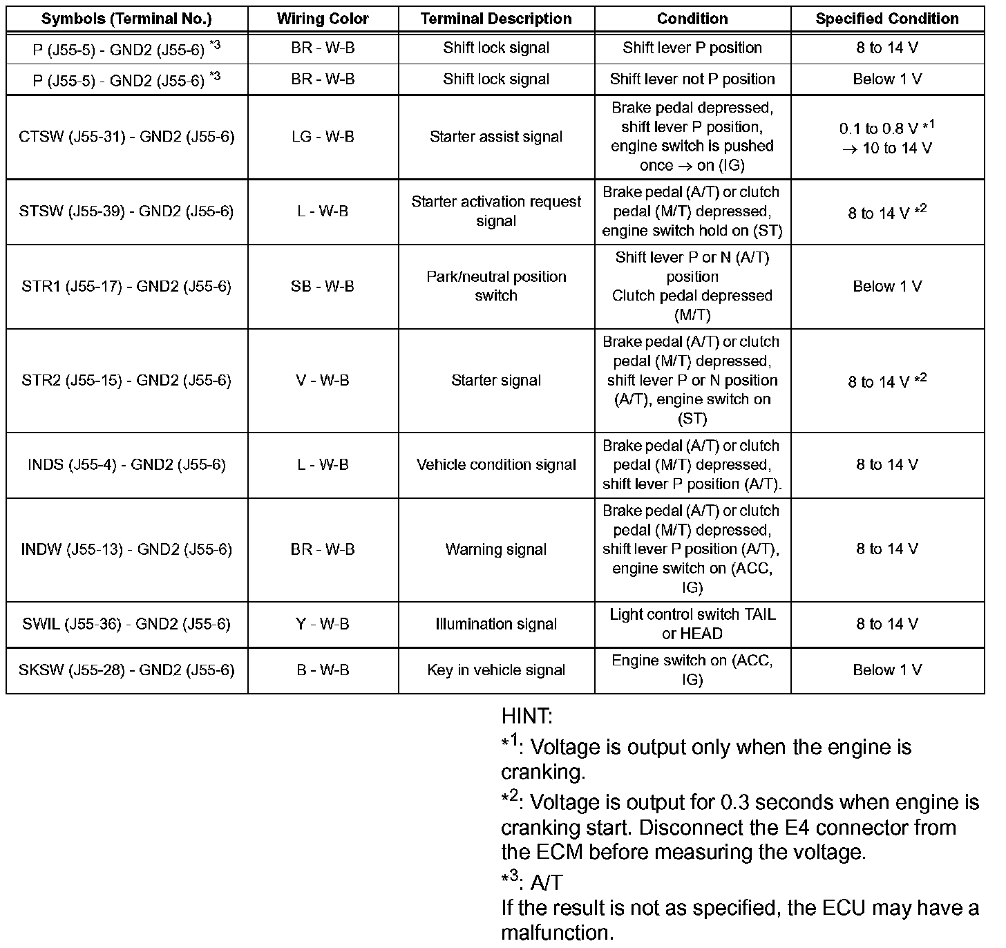 Terminals Of Control Module/Pinouts - Check Steering Lock ECU: