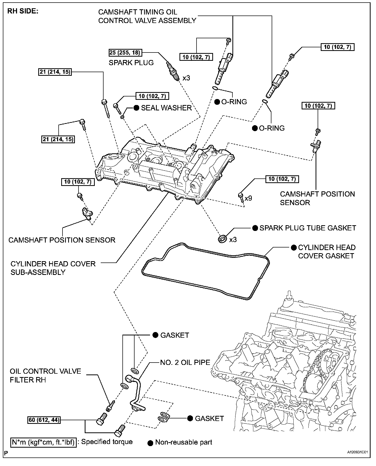 a. Remove the camshaft housing sub-assembly RH by prying between the cylinder head and camshaft housing sub-assembly RH with a screwdriver.