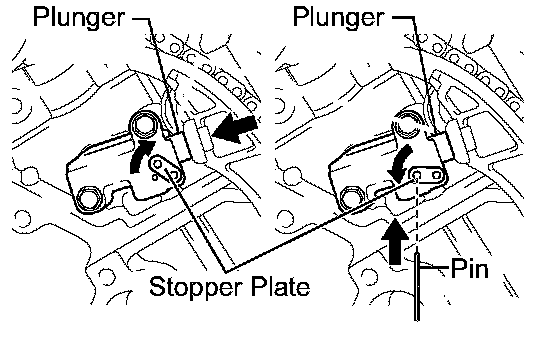 a. Move the stopper plate upward to release the lock, and push the plunger deep into the tensioner.
