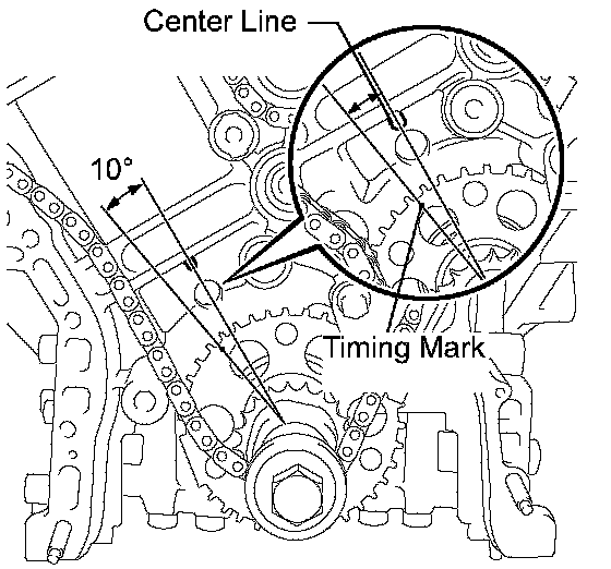 a. Turn the crankshaft counterclockwise 10° to loosen the chain of the crankshaft timing sprocket.