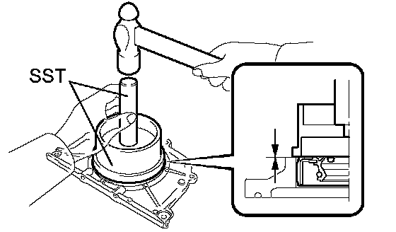b. Using SST, tap in a new oil seal until its surface is flush with the oil seal retainer edge.