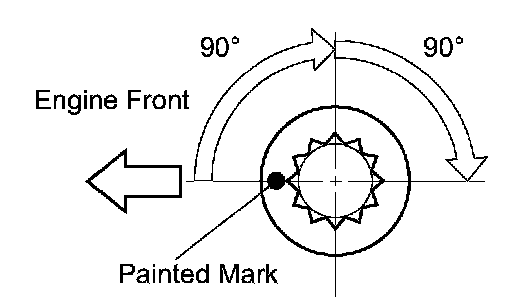 1. Mark the cylinder head bolt head with paint as shown in the illustration.