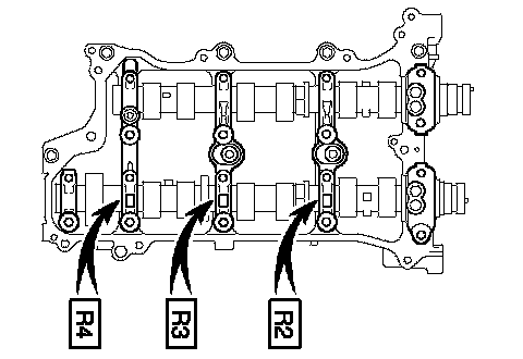 b. Make sure that the valve rocker arms are installed as shown in the illustration.
