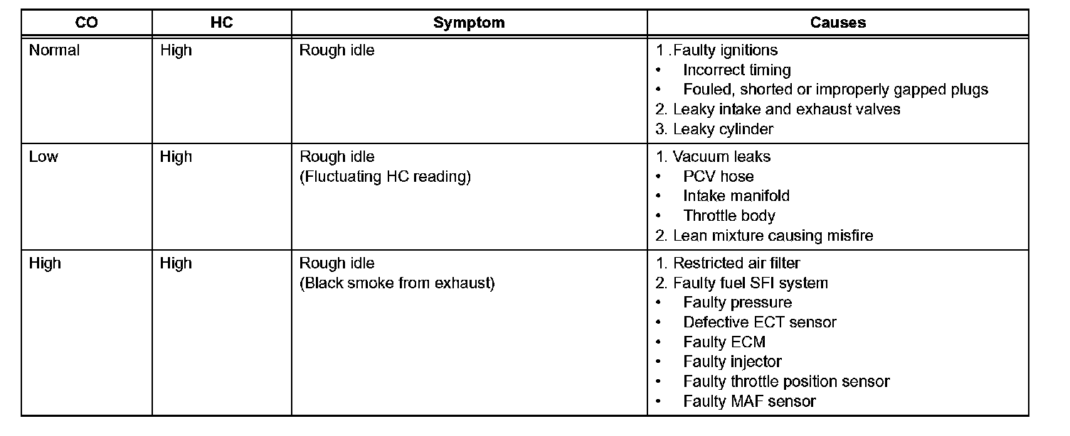 ^ If the CO/HC concentration does not comply with regulations, troubleshoot in the order given.