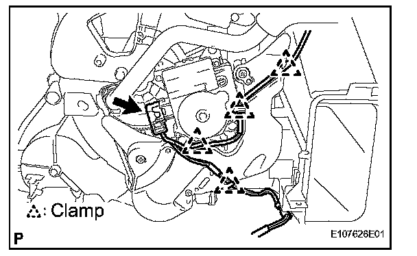 a. Attach the 4 clamps to install the air conditioning harness assembly.