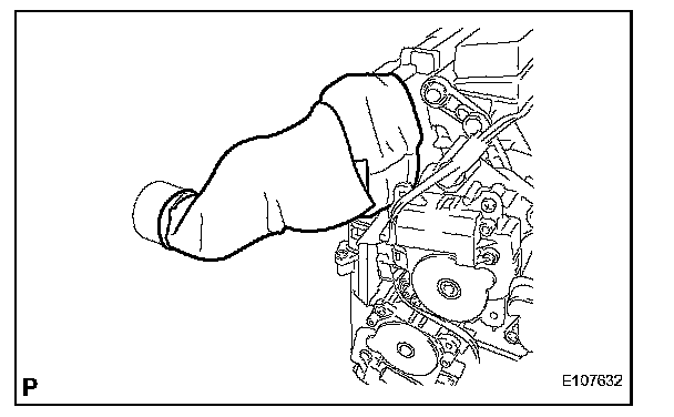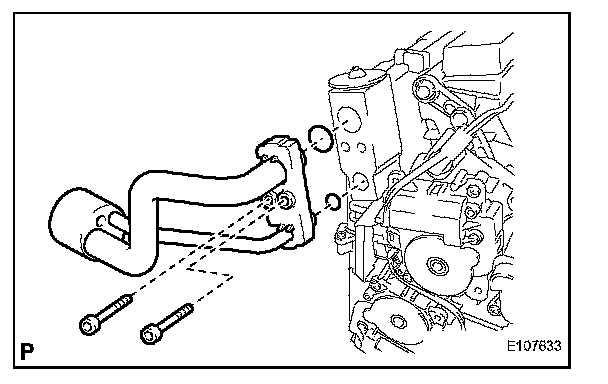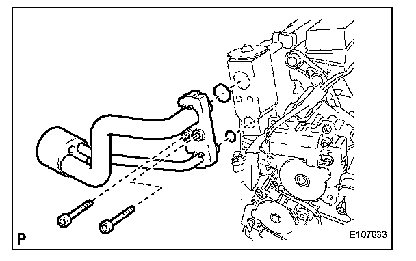 b. Using a hexagon wrench 4 mm, remove the 2 hexagon bolts and air conditioning tube assembly.