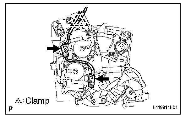 a. Check that the drive gear and the driven gear are engaged at a point with the same number of gear teeth from the standard position. Temporarily install the air mix control servo motor.