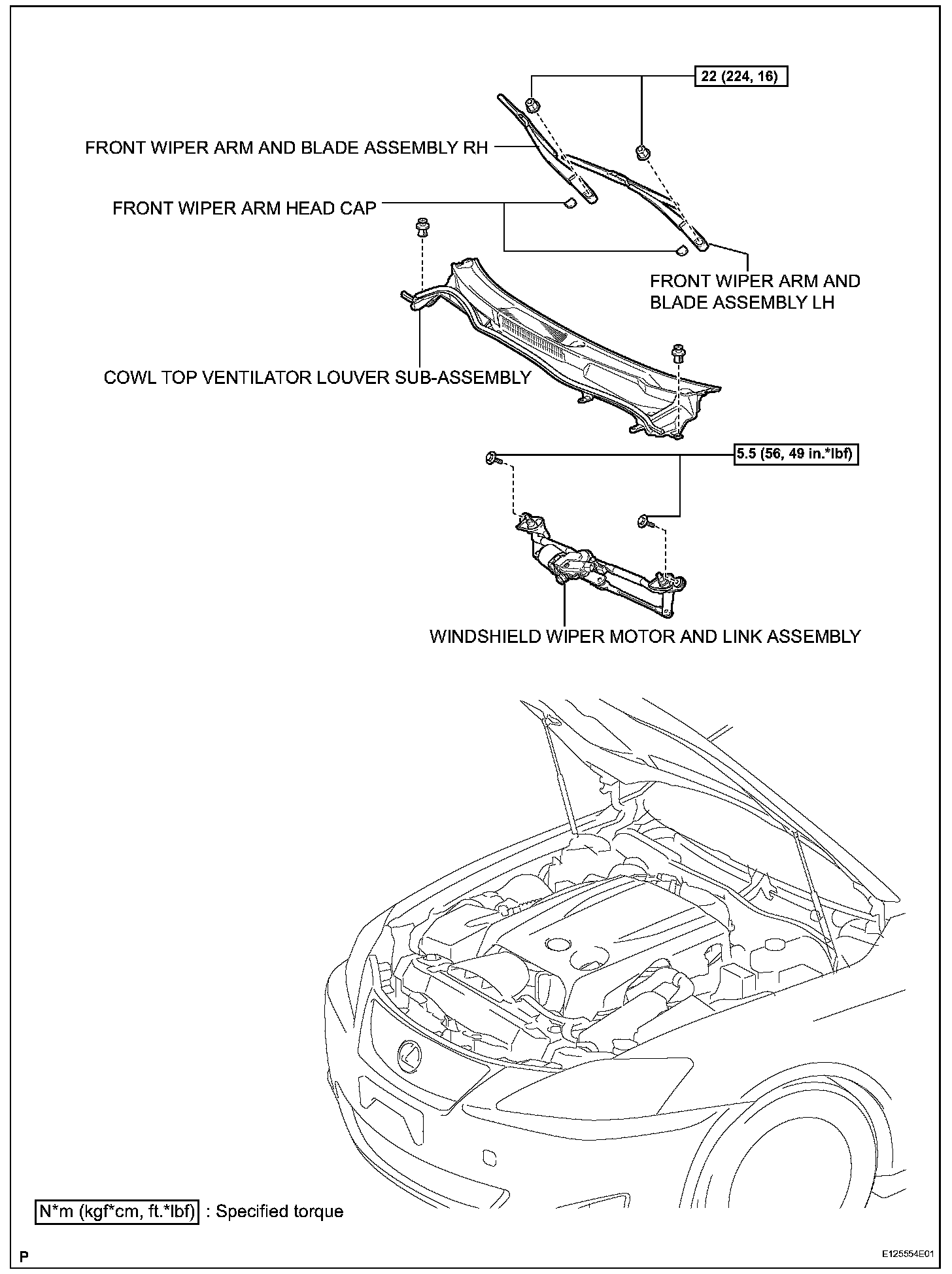 12. REMOVE FRONT WIPER ARM AND BLADE ASSEMBLY LH