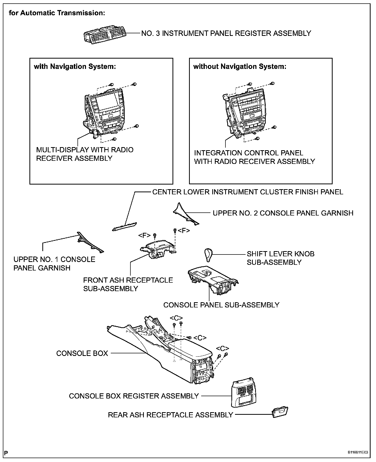 24. REMOVE CONSOLE PANEL SUB-ASSEMBLY (for Automatic Transmission)