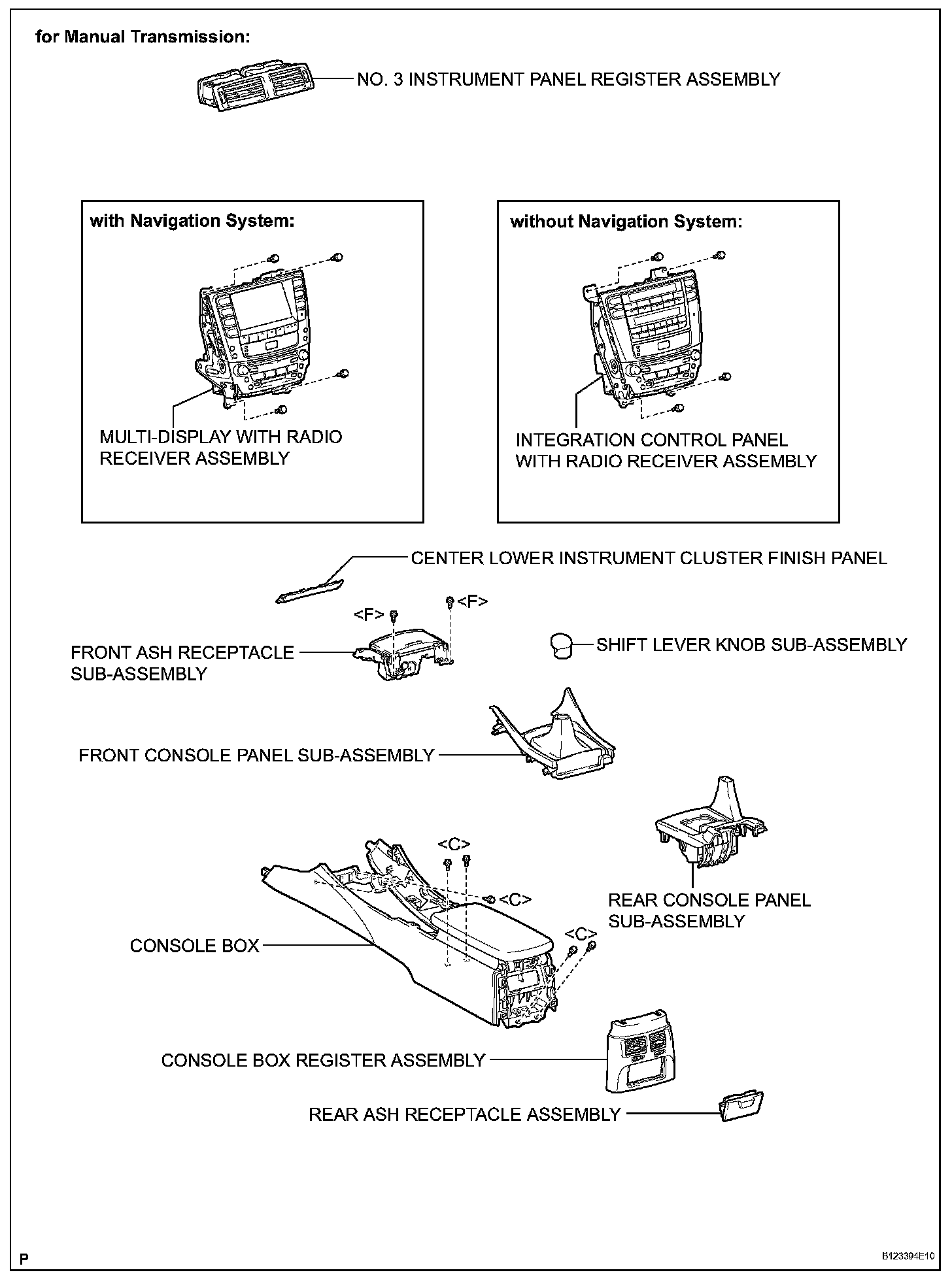 26. REMOVE FRONT CONSOLE PANEL SUB-ASSEMBLY (for Manual Transmission)