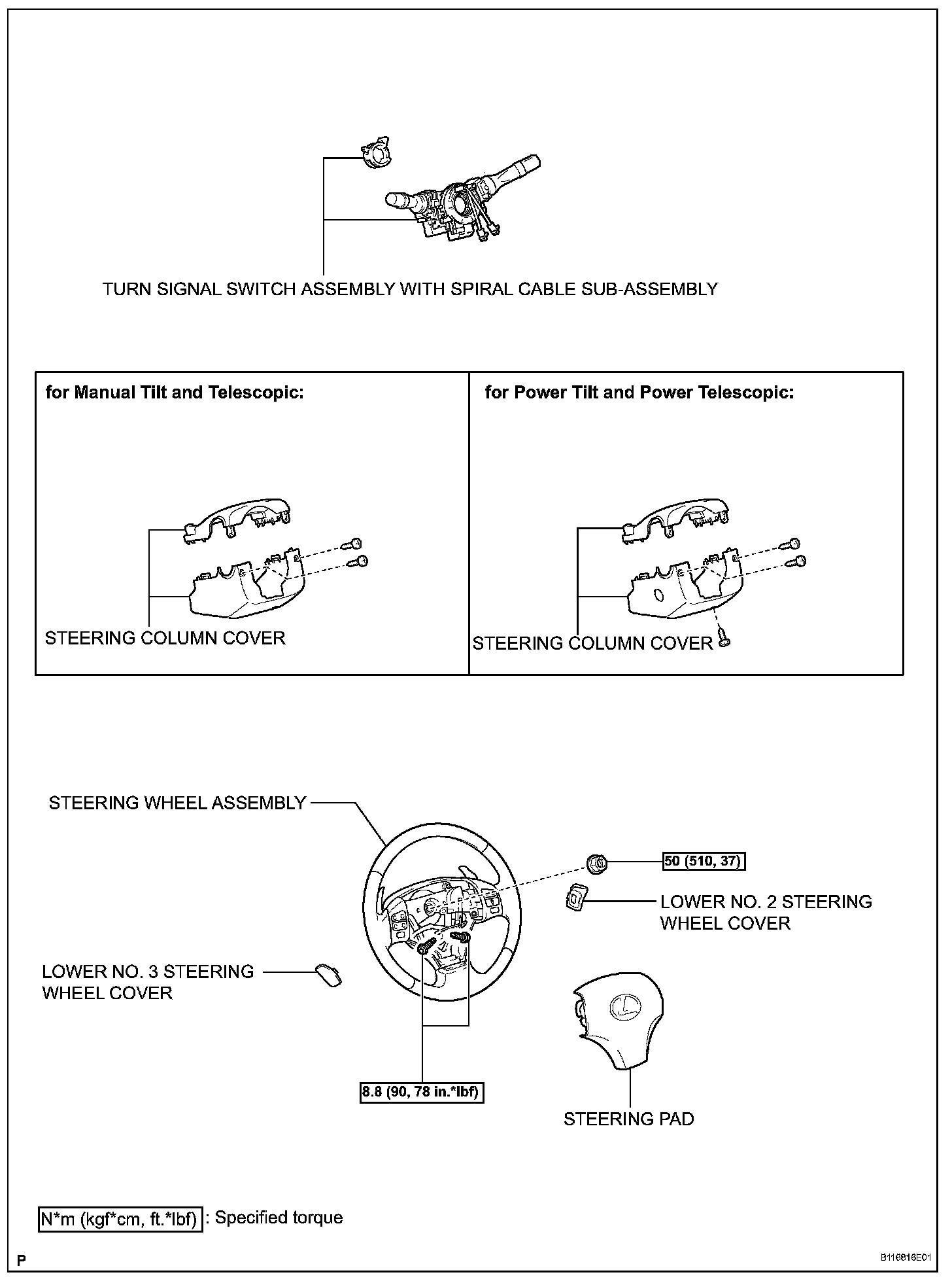 38. REMOVE STEERING COLUMN COVER (for Power Tilt and Power Telescopic)