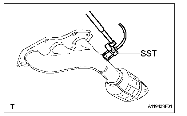 a. Using SST, remove the air fuel ratio sensor from the exhaust manifold LH.