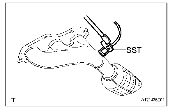 a. Using SST, install the air fuel ratio sensor to the exhaust manifold LH.