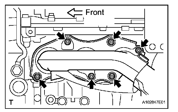 b. Install the exhaust manifold sub-assembly LH with 6 new nuts.