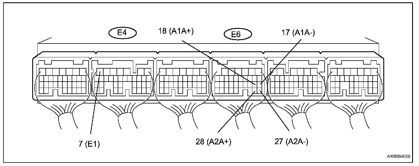 a. Measure the voltage between the terminals of the ECM connectors.