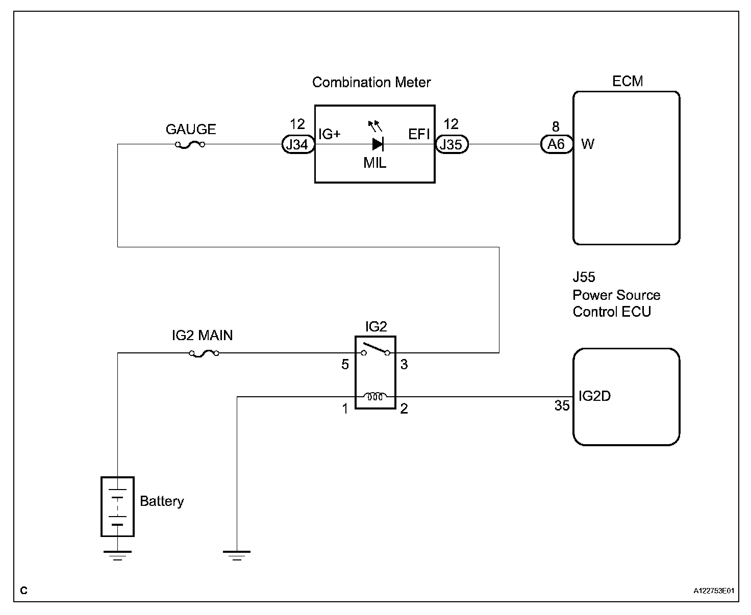 By turning the engine switch on (IG), power is supplied to the MIL circuit, and the ECM provides the circuit ground, which illuminates the MIL.