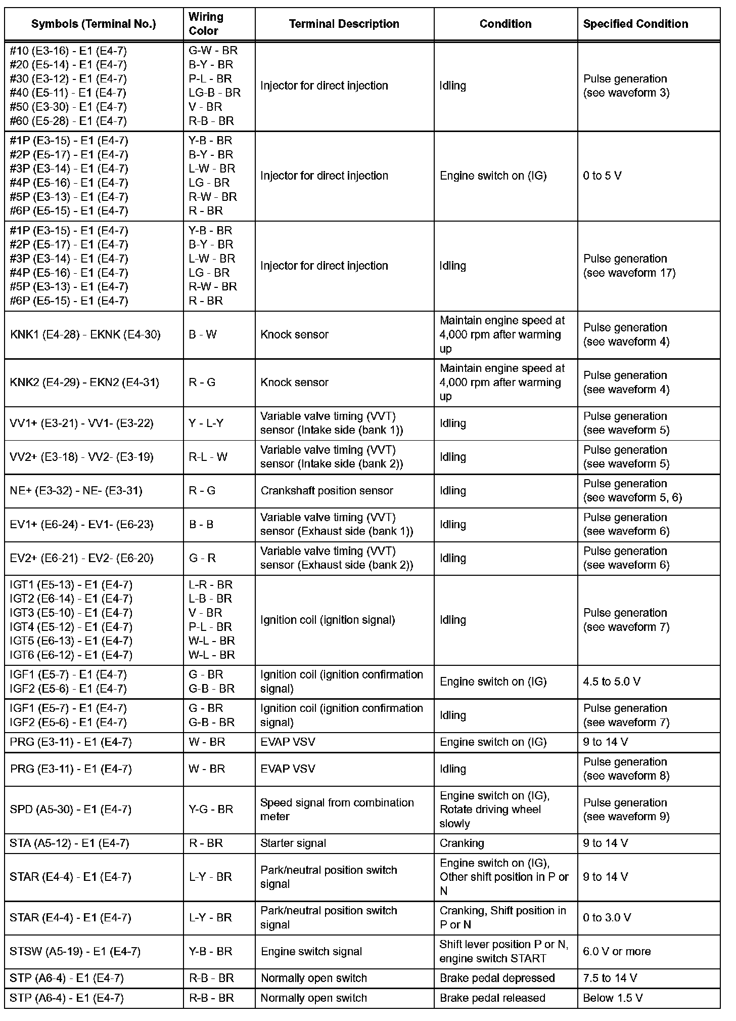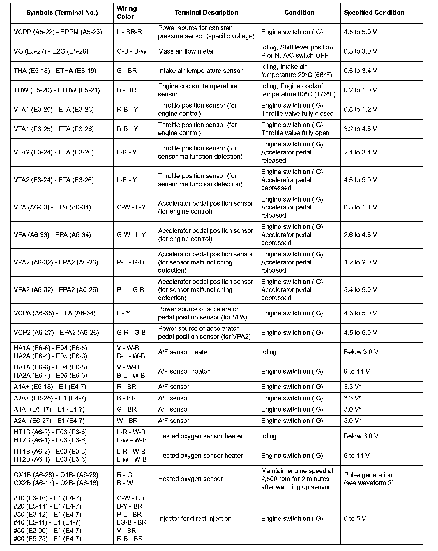 Pinout Values and Diagnostic Parameters