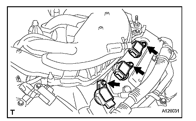 c. Remove the 6 bolts and the 6 ignition coil assemblies.
