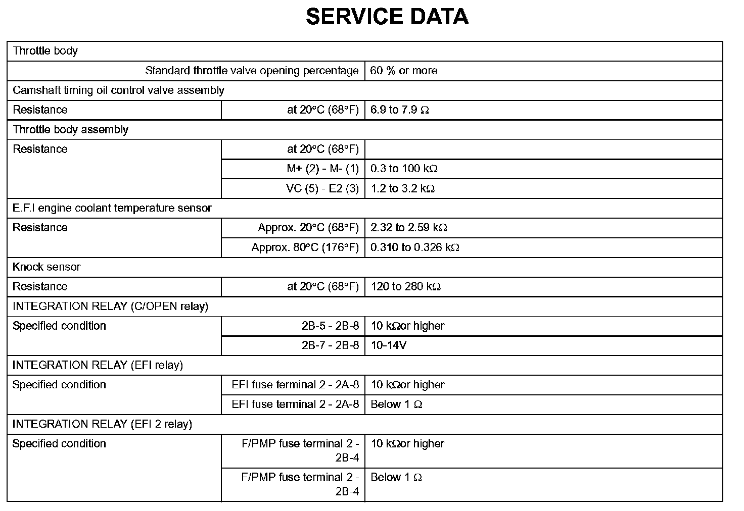 Engine Control System - Service Data: