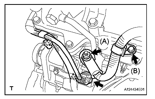 b. Remove the nut (A) and disconnect the wire harness from terminal B.