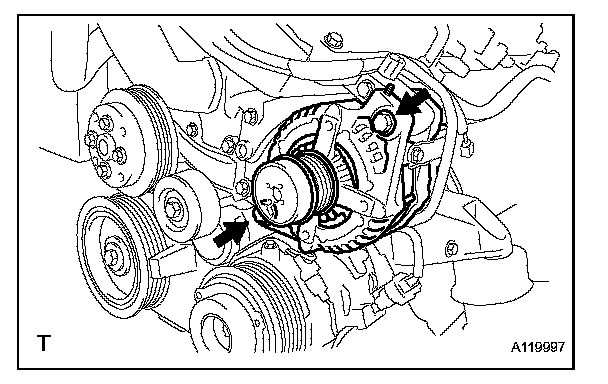 d. Disconnect the generator connector, and detach the 2 clamps.