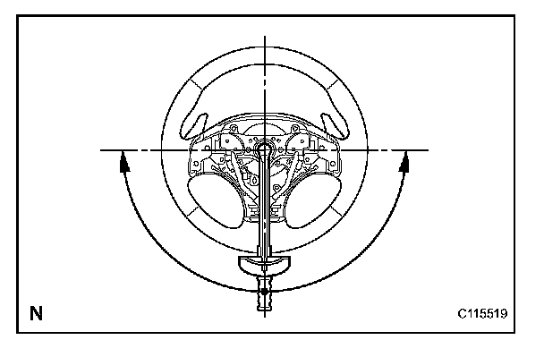 (g) Turn the steering wheel 90 degrees to the right and check steering effort (torque) while turning. Check in the opposite direction using the same manner.
