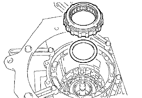 c) Remove the thrust needle roller bearing from the front planetary ring gear flange.