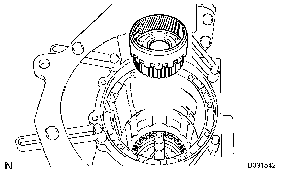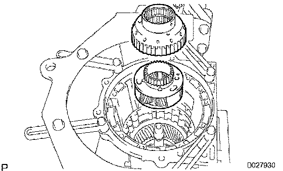 a) Remove the center planetary gear assembly, the planetary sun gear and the No.4 thrust bearing race from the transmission case.
