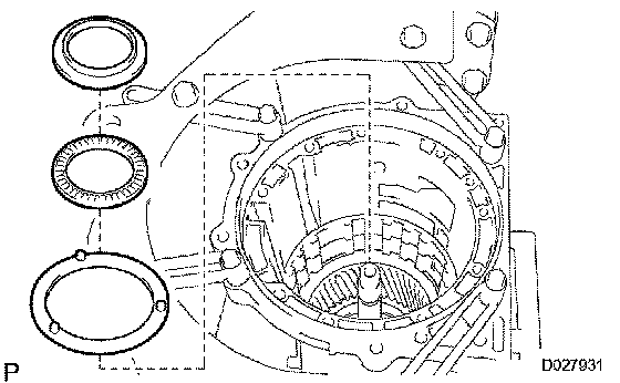 b) Remove the thrust needle roller bearing, the No.3 thrust bearing race and the No.2 planetary carrier thrust washer from the transmission case.