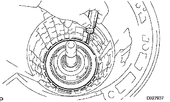 37. REMOVE 2ND BRAKE PISTON HOLE SNAP RING