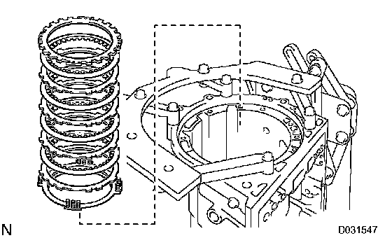 a) Remove the flange, cushion plate, 4 discs and 4 plates from the transmission case.