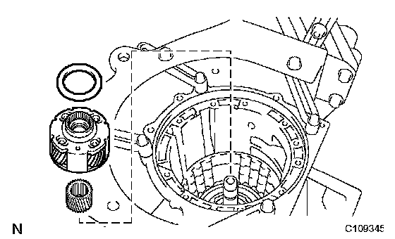 a) Remove the one way clutch assembly and the No.1 planetary carrier thrust washer from the transmission case.