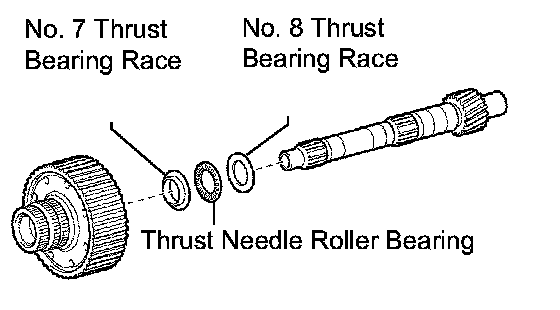 a) Remove the No.8 thrust bearing race, the thrust needle roller bearing, the No.7 thrust bearing race and the planetary ring gear flange from the intermediate shaft.