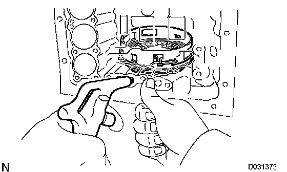 a) Hold the No.2 brake piston and apply compressed air (392 kPa, 4 kgf/cm2, 57 psi) to the transmission case to remove the No.2 brake piston and the No.2 brake cylinder.