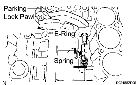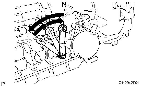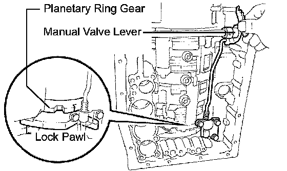 b) Shift the manual valve lever to the P position, and confirm that the planetary gear is correctly locked up by the lock pawl.
