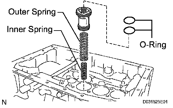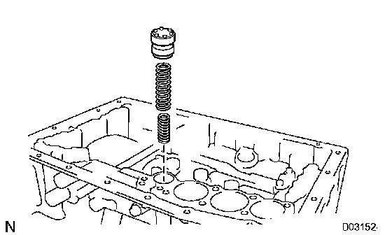 a) Install the 2 springs and the accumulator valve to the hole.