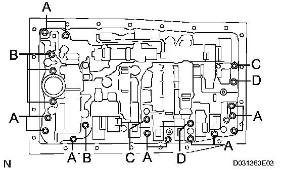 Torque: A (14 mm bolt) 34 Nm (347 kgf-cm, 25 ft. lbs.)