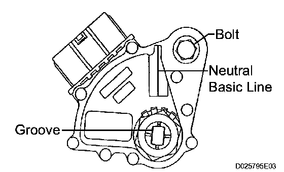 d) Align the neutral basic line with the switch groove as shown in the illustration, and tighten the adjusting bolt.