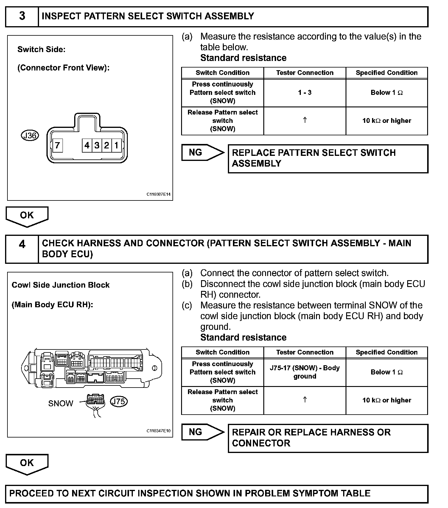 (*) Pattern Select Switch (ECT SNOW Switch)