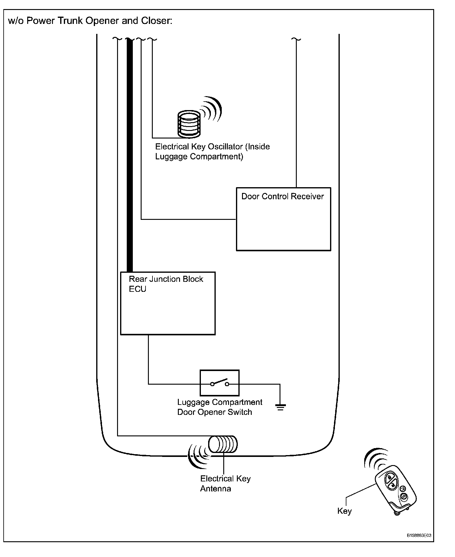 - The detection area of the luggage compartment oscillator is formed when the luggage compartment door is closed or the luggage compartment door opener switch is pressed.