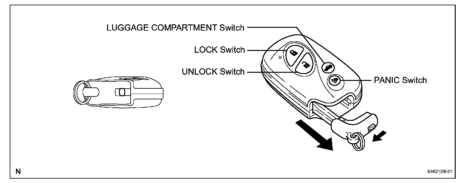 - The transmitter function for the wireless door lock control has a LOCK switch, UNLOCK switch, LUGGAGE COMPARTMENT switch and PANIC switch (w/ PANIC switch).