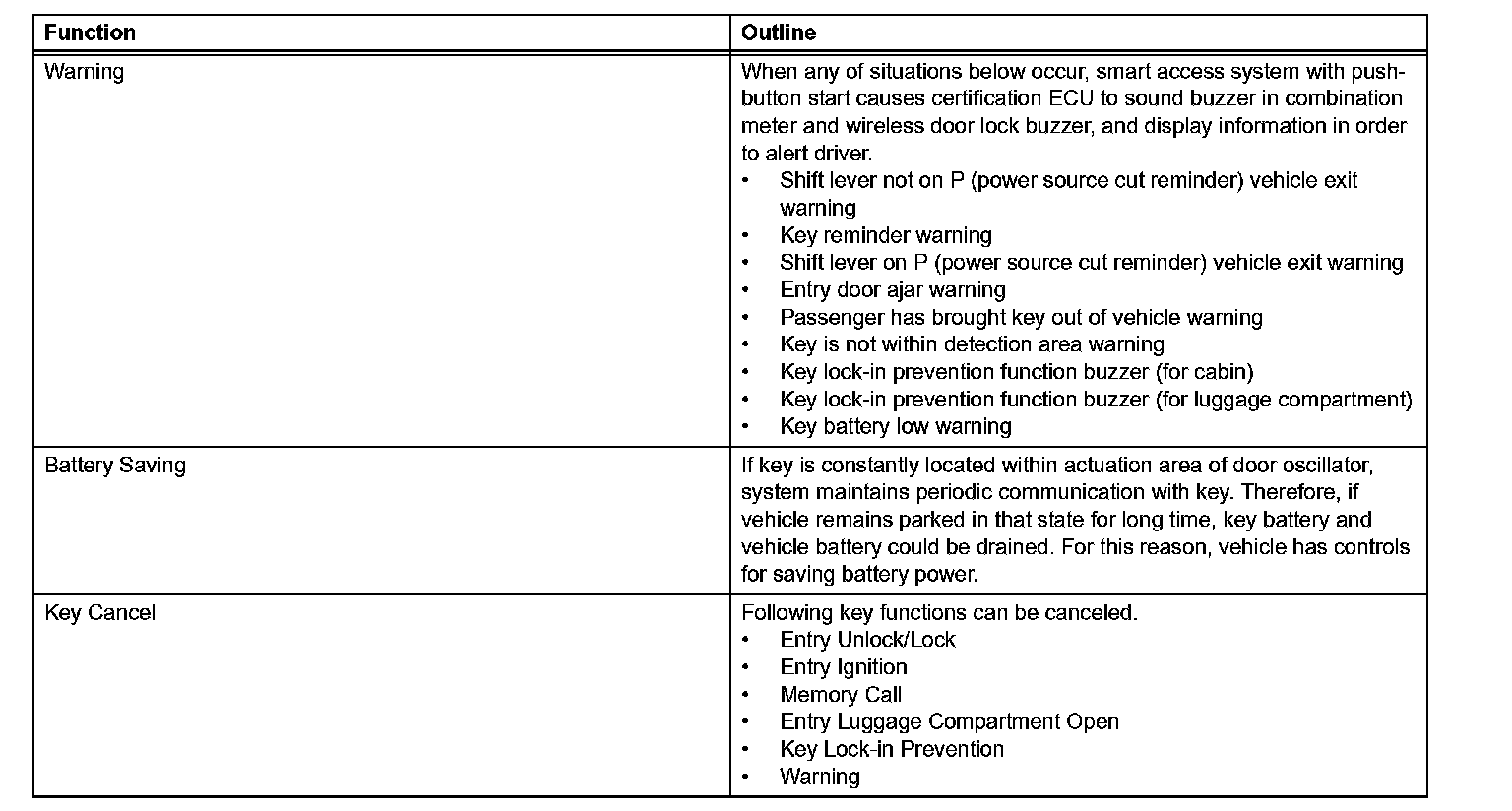 a. The smart access system with push-button start has the given functions.