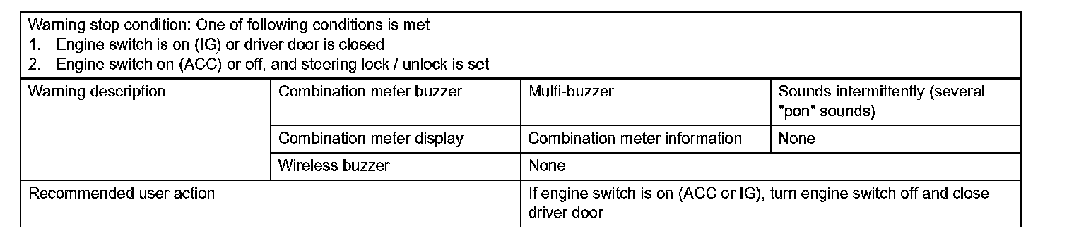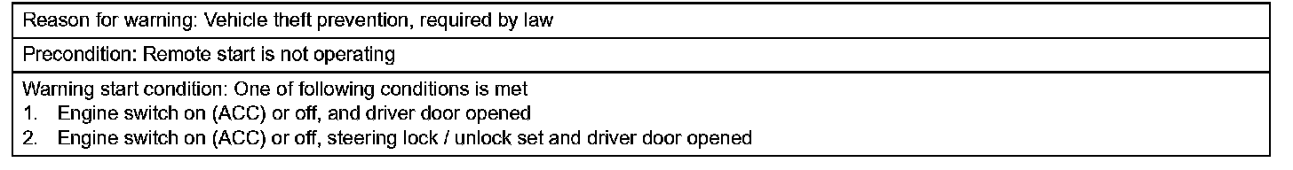 1. Steering lock / unlock set, driver door is opened and movement away from vehicle is attempted